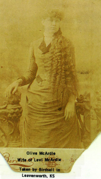 Olive McArdle – wife of Levi McArdle. Interestingly enough I found a Census entry in 1900 for a Levi McArdle in Kansas that shows him living with the Louthard family as a servant (and widowed). He is listed as born in April 1855 in Illinois.