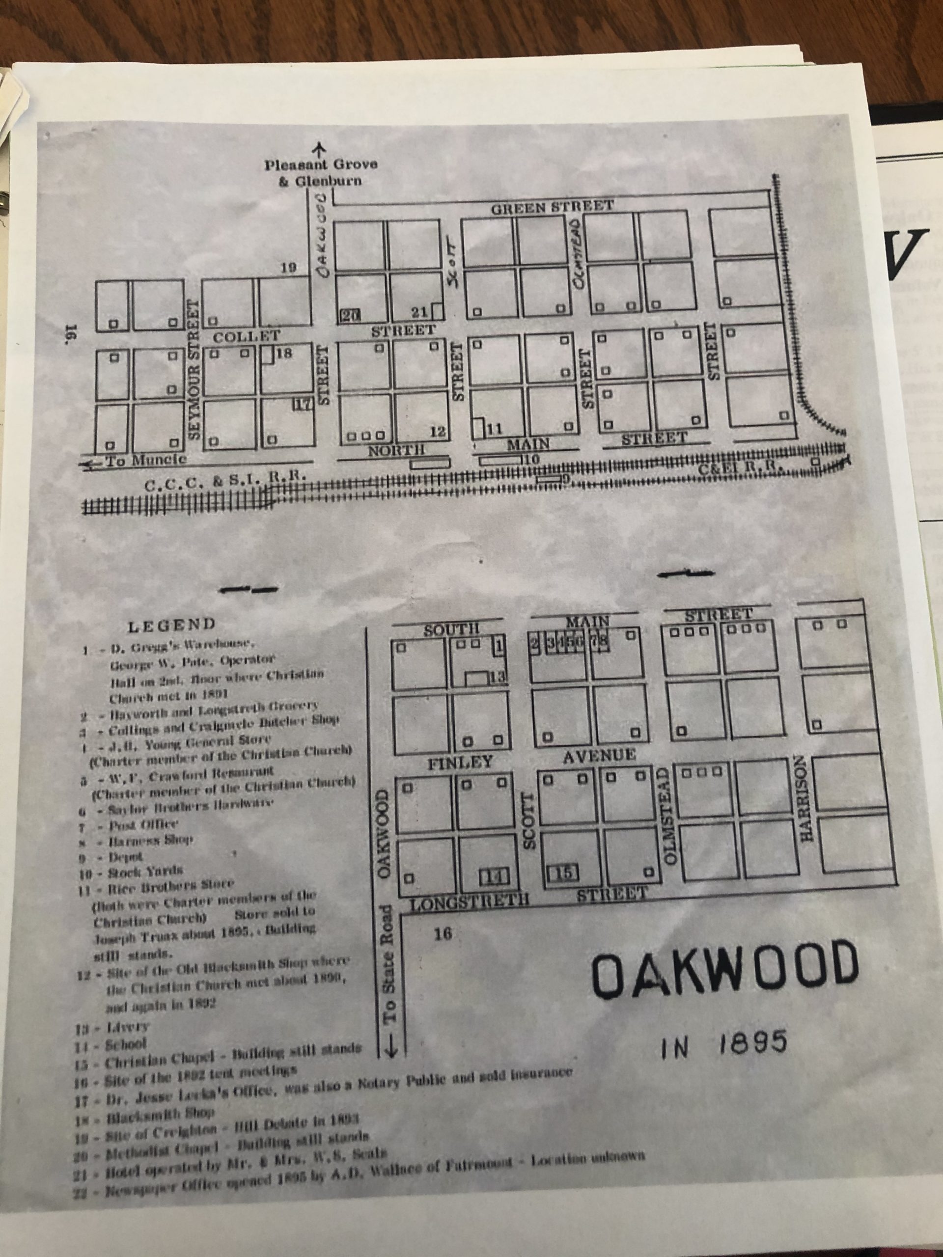 During the late “Roaring Twenties” Oakwood residents had the opportunity to enjoy the Follies, presented by the men of the village. Only girl in the picture is Virginia Anderson at the end of the third row)