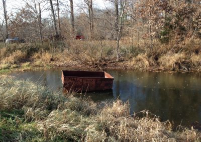 The toughest to correct was the wagon in the pond. Someone had to get into the pond and attach onto the wagon and then the wagon had to be drug out of the pond. It ended up taking a few years to get it out! The bulldozer though may still be needing repairs.